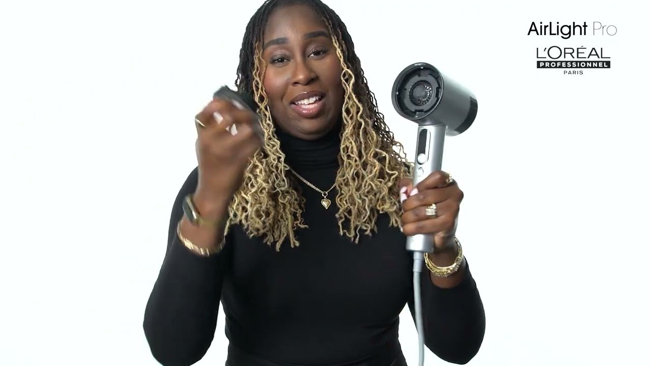 With connected app, customize your own signature settings. Adjust in increments of 5% for airflow and 15-20°F. Pre-set sleek, curly, and coily settings.